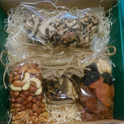 Gift-wrapped portions of dried mushrooms, nuts and dried fruits presented in attractive packaging are a perfect present for anyone. They make for a great Christmas gift, or for any occasion for that matter.