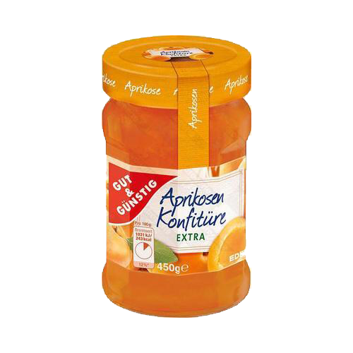 Excellent apricot jam with a high fruit content that is definitely worth trying. It is great on fresh bread as well as on freshly baked gingerbread or other pastries. It contains bits of fruit.